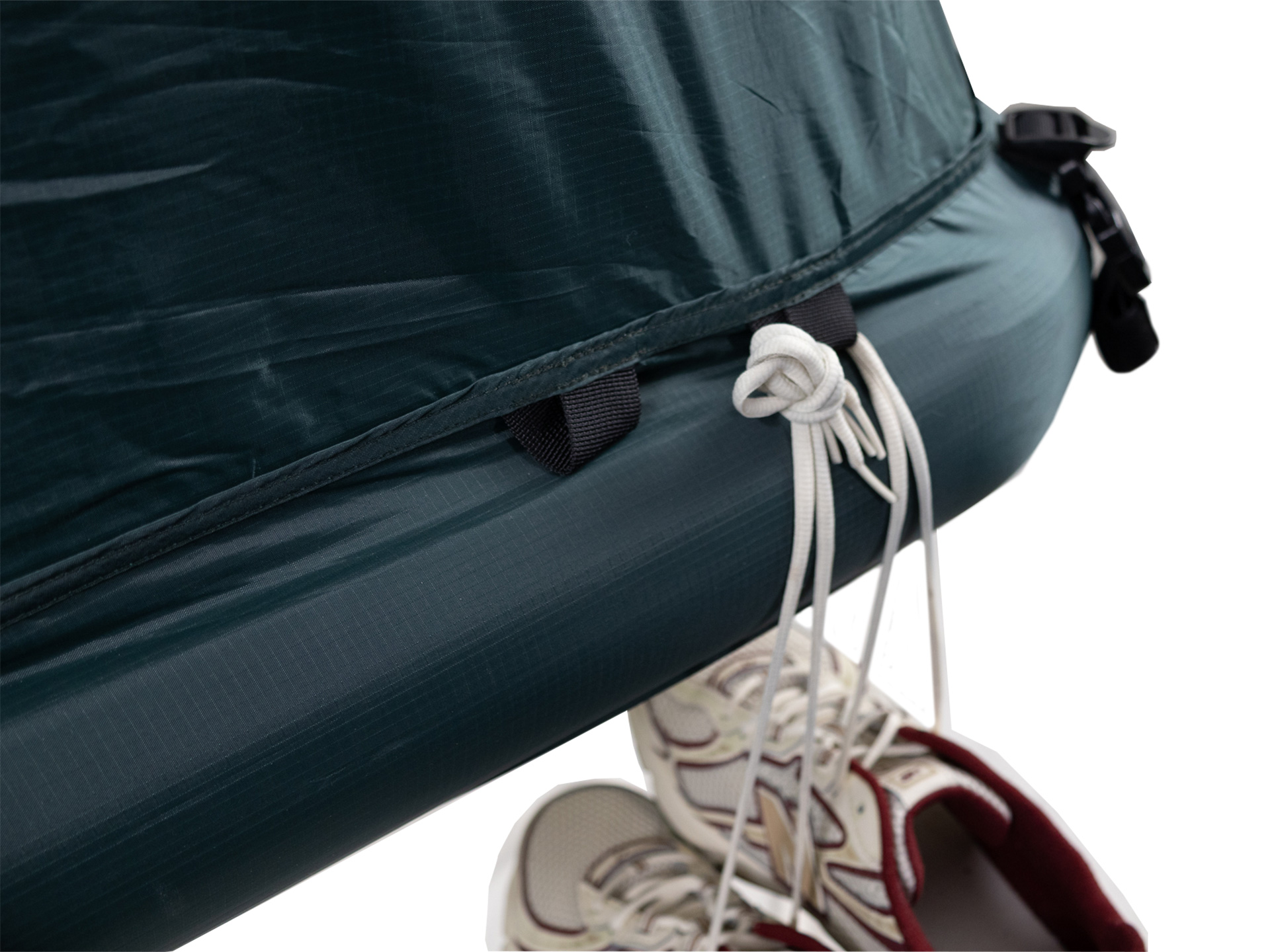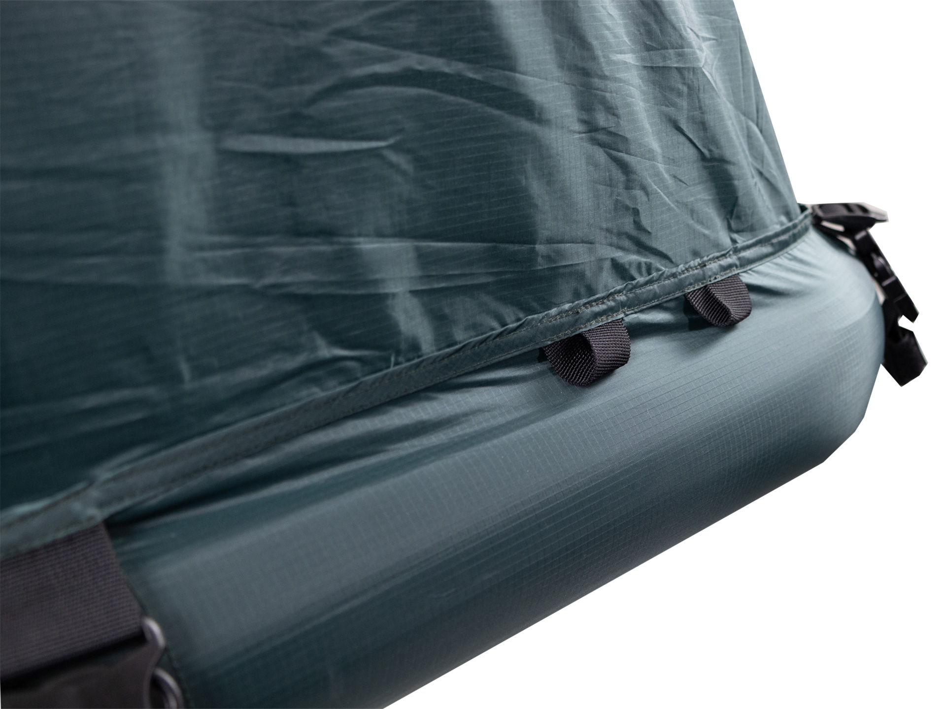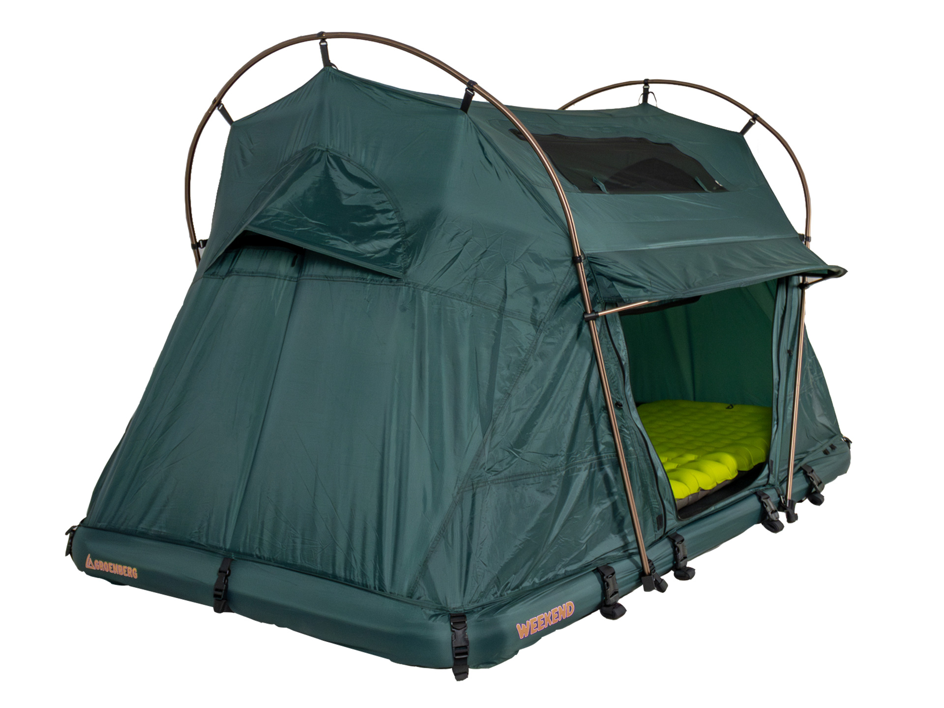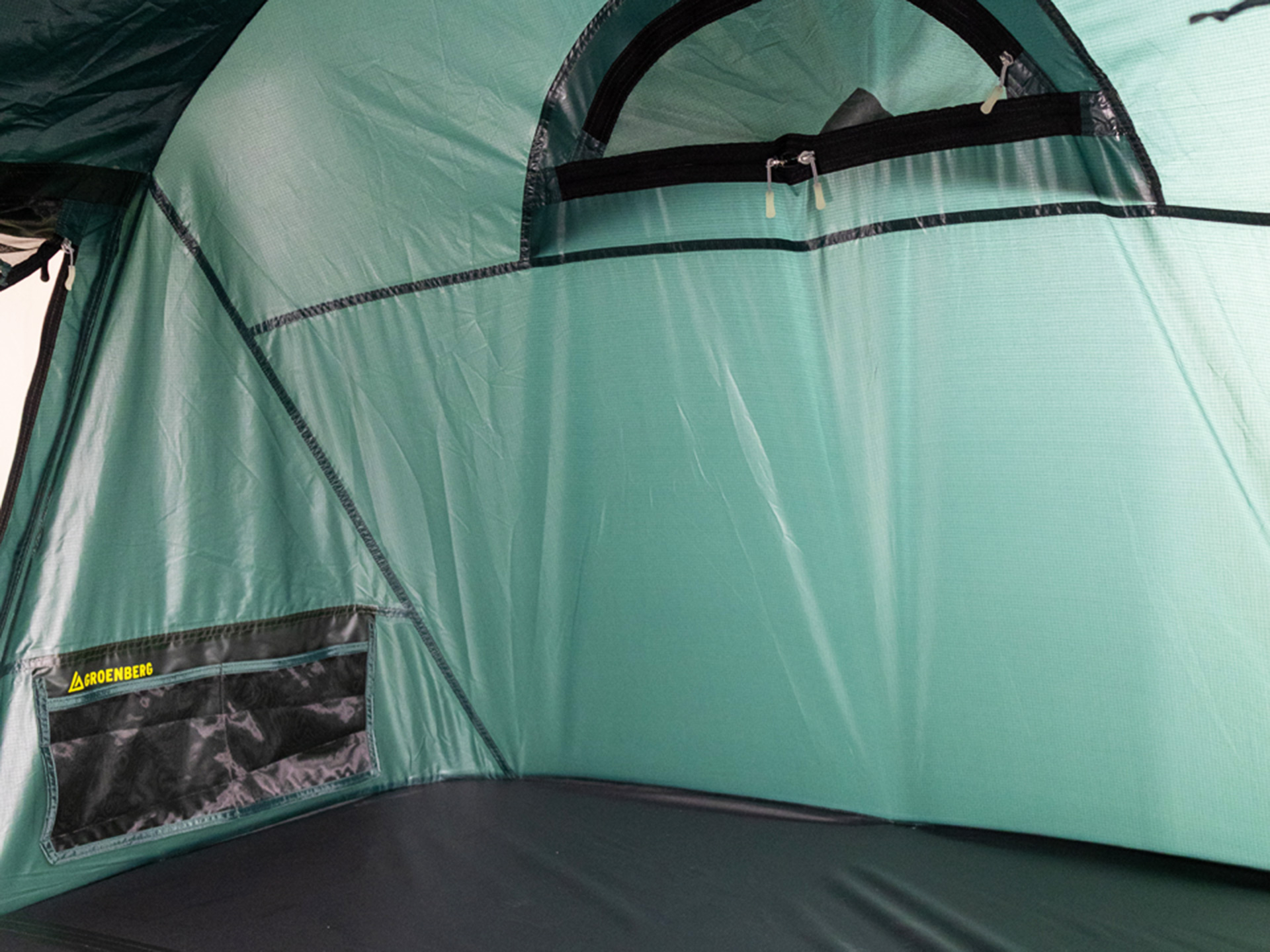 Dachzelten soll einfacher, erschwinglicher, alltäglicher sein als bisher. Wir lieben es auf dem Dach zu schlafen, aber so wie es bisher ist, ist es zu umständlich, zu schwer und zu teuer. Nicht umsonst ist so ein durchschnittlicher Dachzelt - Besitzer meist auch Einfamilienhaus- Besitzer. Und jenseits der 40. Und männlich. Für ihn und seine Bedürfnisse gibt es zahlreiche, großartige Zelte im Markt. Aber nicht für uns und unsere Bedürfnisse. Die sehen gänzlich anders aus. Wir wollen keine Weltreise planen, keine Unsummen in Equipment stecken, wir wollen auch kein Haus auf dem Auto spazieren fahren. Wir wollen lachend ins Wochenende starten, am liebsten schon Donnerstag. Badehose in der einen Hand, das Dachzelt in der anderen und dann los Richtung Sonnenuntergang. Und wenn das Wochenende vorbei ist, verschwindet es im Schrank. Zusammen mit all den anderen lustigen Sachen, die für uns Abenteuer bedeuten. Das WEEKEND macht alles anders. Es ist einfach zu tragen, einfach zu montieren, einfach zu verstauen. Seine Bodenplatte wird aufgepumpt, wie du es vom SUP kennst, mit der mitgelieferten Pumpe oder einem Kompressor. Dann einfach das Gestänge durchfädeln und schon kann das Zelt aufs Auto geworfen werden. Schnell noch mit Reling und Leiter verzurren und fertig ist die Wochenendlaube. Das Ganze dauert nur ein paar Minuten, mit Kompressor kannst du nebenbei schon den ersten Kaffee trinken. Und dann kann es losgehen. Platz für zwei und eine Aussicht für Millionen. Nicht wegen den zwei großen Seiteneingängen, die haben alle. Sondern wegen dem fantastischen SkyView Dach, das dir in schönen Nächten einen freien Blick auf den Sternenhimmel bietet. Das hat wohl kaum ein Dachzelt sonst.